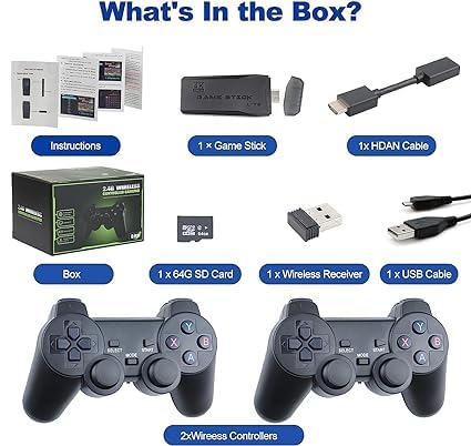 RETRO GAMERS - Wireless Game Stick - (10,000 in 1 Games)1080p with 2 Controllers