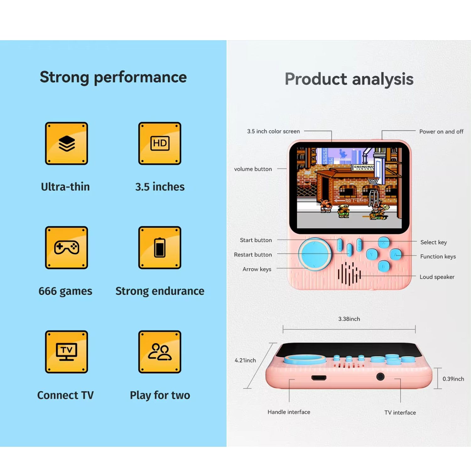 - 🎮 666 Classic Games in 1: Enjoy a vast collection of 666 built-in retro games, offering endless entertainment and nostalgia in one compact device.